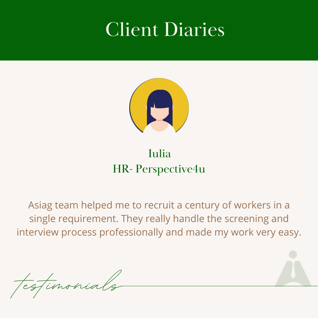View All JobsAt Asiag Recruit, we are proud to have more than 5 years of experience in providing the highest quality of human resources around the globe. Our team is committed to delivering the best services to our clients and helping them to achieve their desired goals.